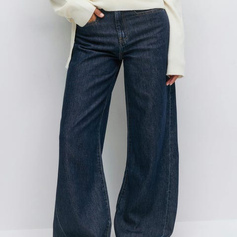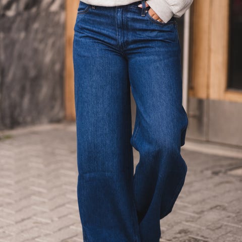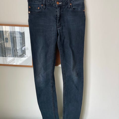 "Birkin Flare" fra Milk. Trendy denimbukse med lange og vide ben. Buksen er høy på livet, beltehemper og 5 lommer. Råkant i enden av bena. Buksen lukkes med knapp og glidelås i front. Buksen sitter fint på og har god stretch. Skinndetalj logo bak.