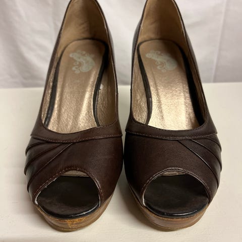 brune hæler, pensko dame, høyhælte sko, sko med hæl, hæler str 36, fest sko, brune pumps, klassiske sko, sko til jobb, elegante hæler