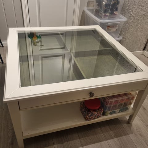 Gir bort 1 stk. Pent brukte sofabord. Bordet har alltid vært dekt med duk og glasset er i sin helhet. Kan hentes etter avtale.