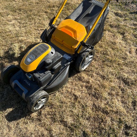 Stiga gressklipper selges, har fremdrift og oppsamler. Ikke orginal oppsamler men fungerer, akkurat fått service. Fremdrift trenger å justeres da den tar litt lite.
