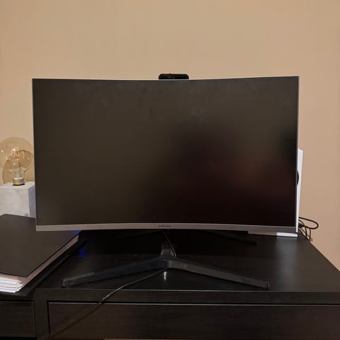 Samsung Odyssey 27" buet gamingskjerm får du fengende gamingopplevelser, høyt kontrastnivå og skarpe detaljer takket være VA-panelet med QHD 1440p-oppløsning, 240 Hz oppdateringsfrekvens og et buet skjermformat.