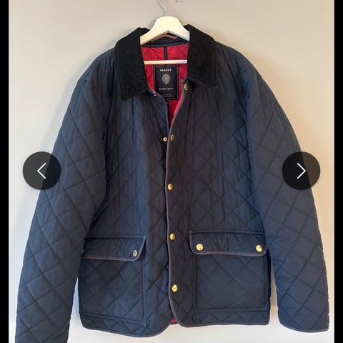 Tekst fra Gants nettside: Denne mid-length decker-jakken er laget av resirkulert polyester og kombinerer stil og funksjonalitet. Med en normal passform og lengde som stopper under hoftene, har den trykknapplukking foran, skjult glidelås, justerbare ermemansjetter og håndvarmende sidelommer. Designet fullføres med en elegant cordfløyelskrage og helfôret interiør med to innerlommer. Den vannavstøtende DWR-behandlingen gir beskyttelse mot lett regn, noe som gjør den til et praktisk og sofistikert valg for mellomsesonger.
