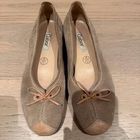 Ballerinasko (38) i skinn med perle- og paljettdetaljer