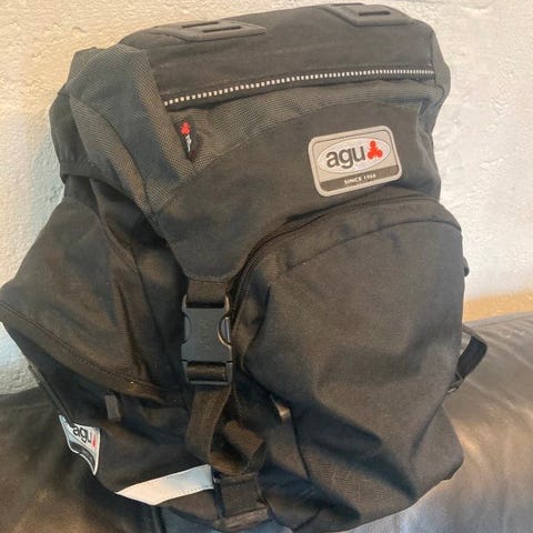 Vesken har både rygg og bunn for god stabilitet. Innvendig er det ett stort rom på ca 36 liter. På utsiden er det ett lite rom med vanntett glidelås. Krokene bak "klikkes" og låses på bagasjebrettet med enkle grep. Skulderstropp og håndtak gjør den elegant å ta med.