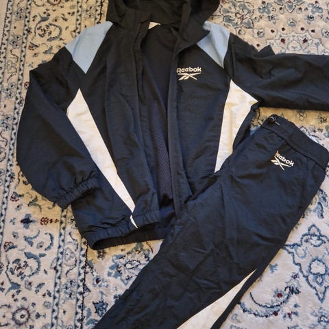 Ny treningsdress New balance, passer høyde 140-146. Mørkeblå, avsmalnende bukse med mansjetter.