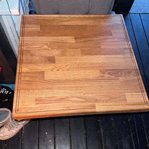 Hjemmelagde skjærefjøler i eik selges. 4 stk fjøler på 60x40 med rundede kanter og smule/kjøttsaftrenne. Fjølene er 4cm tykke og godt pusset og oljet