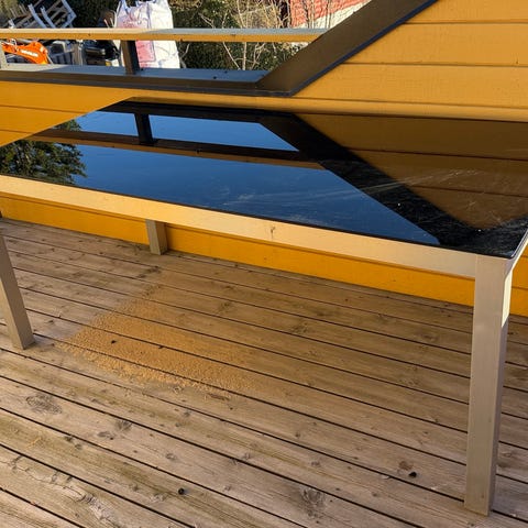 Bord med glassplate og fire stoler selges. 140x85 cm