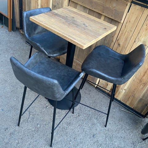 2 stk Vintage kafébord med Eiketreplate og metallben. Bordet har en solid trebordplate i mørk brun farge og dekorative metallben i sort. Passer godt til både innendørs og utendørs bruk i kafeer eller hjemmemiljøer. Stilig og funksjonelt design.