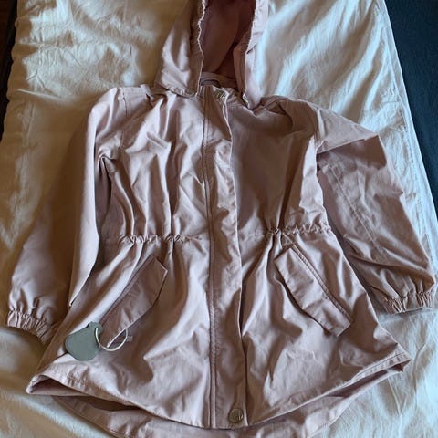 Pent brukt regnjakke lilla str 116 merke Mini a ture