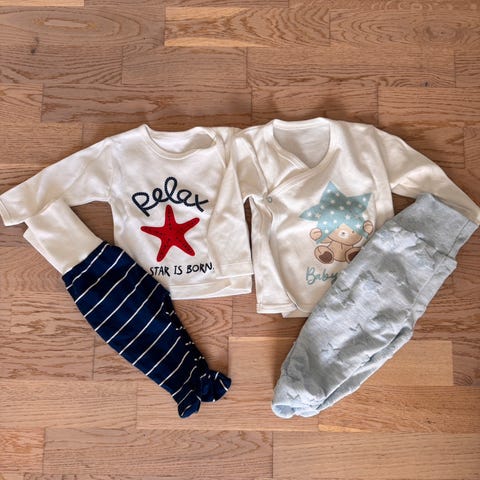 Begge er sett med genser og bukser med føtter 💙
