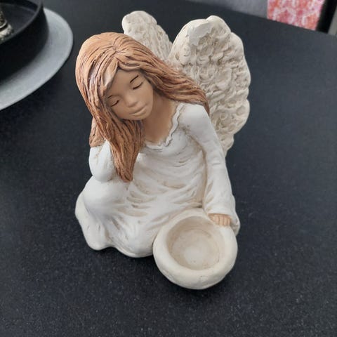 Stor, flott engel med flotte vinger. Høyde 27 cm. Vingene 16 cm på det bredeste. Ferdig prutet!