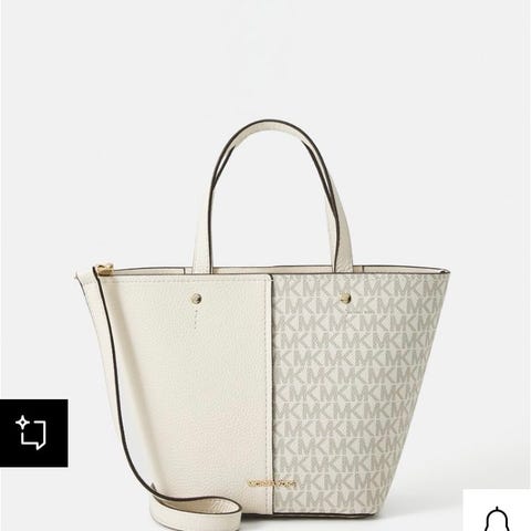Fin crossover veske i rosa med blomsterprint og tekst: Think in magic