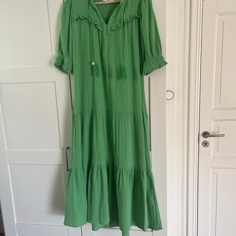 Sommerkjole, bomullskjole, grønn kjole, Anna Kamola, Eline Dress, str S, made in Italy, volangkjole, lett kjole, ferieantrekk, luftig kjole, boho kjole, hverdagskjole, ubrukt kjole.