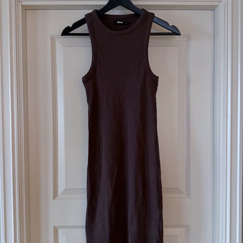 Kjole med stropper og lommer. Blondedetaljer øverst.