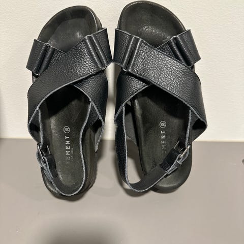 Veldig fine svarte sandaler i skinn som dessverre ikke passer min fot. Kun prøvd på inne.