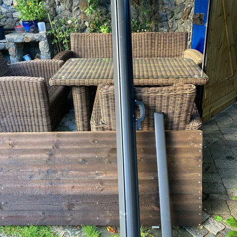 Levegg i pil, høyden er 170cm og lengden er 2 meter. Kun brukt i to sesonger ute, og ser like pen ut.
