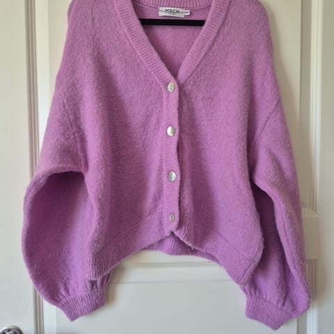 Rosa cardigan med ull i seg. Mohair, alpakka og akryl. Ny med lappen på. Fresh og fin rosafarge! Knapper. Ny pris 1800