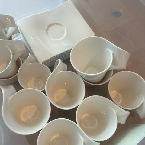 Pent brukt Villeroy & Boch Phönix Blau Malva service, selger 6 kaffe kopper og 8 skåler (ene skålen er i vask, så er derfor man kun ser syv). Kan ikke se noen skader/slitasje når jeg ser fort over