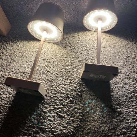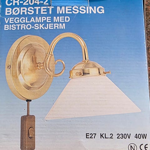 Vegglampe m/ 2 matte glasskupler med nye leddlyspærer i fin stand.