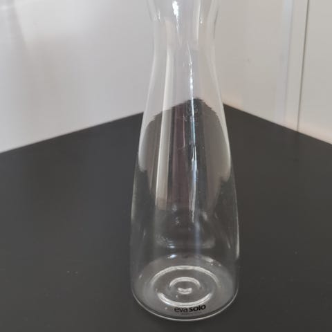 Selger en karaffel fra Hadeland Glassverk. Er merket MotorForum i bunn, men det syntes nesten ikke.