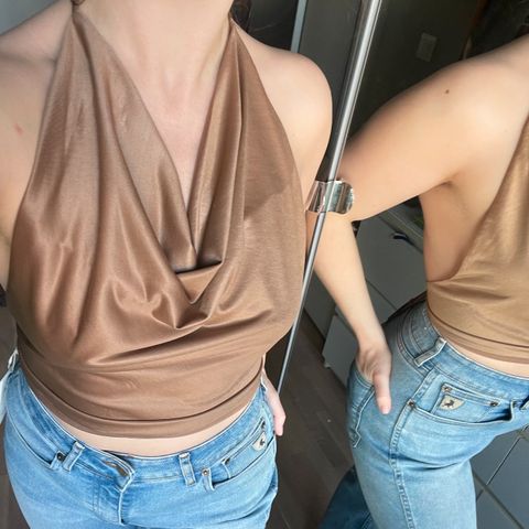 Topp i strukturert stoff. One-shoulder design. Aldri brukt, lappen er på. Passer M-L