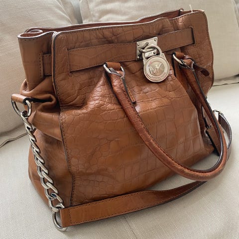 Skinnveske fra Michael Kors. Nærmest ubrukt skulederveske fra Michael Kors. Ren og fin inni og nydelig lyst skinn. Passer til alt og rommer mye.