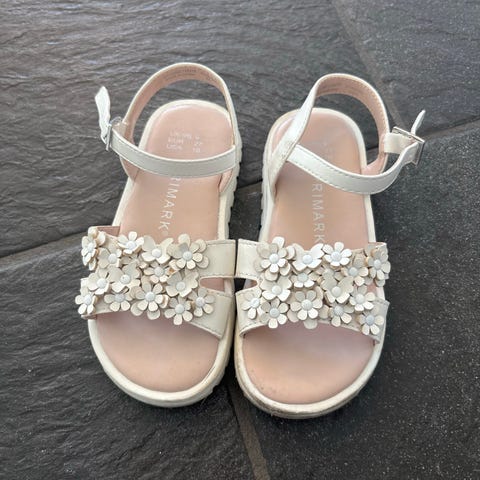 Hvite sandaler med blomsterdetaljer. Kun brukt til pent.