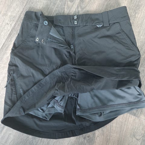 Skort; skjørt med shorts, modell Liv fra Didrikson. Str. Sort, 100% polyester. Veldig fint snitt og behagelig på. Mangler lapp, men aldri brukt; da den planlagte reisen aldri ble av.