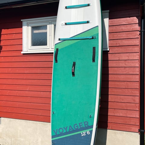 Dette er en allround SUP som egner seg både til turpadling, lek og moro; du kan ha med både barn og hund eller oppakning til overnatting, og brettet er fortsatt stabilt. Den egner seg også bra til bølgesurf på små bølger og den kan brukes til elleve-padling i enkle styrk siden den har korte finner i hardplast. Vi bruker disse brettene også til SUP yoga.