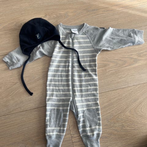Nøstebarn sparkebukse og genser str ca 74 - noen hull og anmerkninger - se bilder, perfekt under dress eller i soveposen