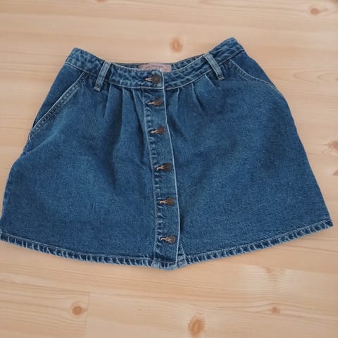 Så fint olaskjørt fra Bik Bok i str. S. Kort og utsvingt, veldig kul modell. Har vært en favoritt, så fargen har blitt «vintage», men det er i stødig bomull så har myyye bruk igjen.