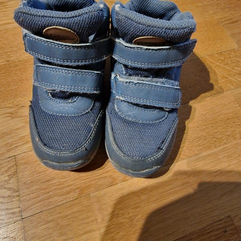 Høyere høst/vår-sko med foring og borrelås i str.28. Mørke blå med gullstjerner. Fine sko med 10cm høyde.