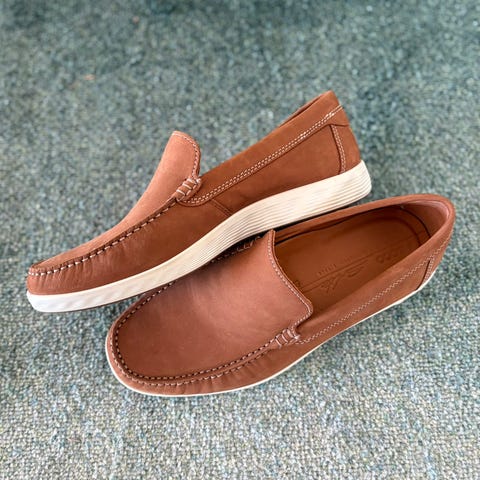 Selger et par ECCO S Lite Moc M sko i størrelse 43. Skoene er i brun farge og fremstår som nye, brukt så vidt en gang. Perfekte for deg som ønsker komfortable og stilige sko til både hverdags og jobb.