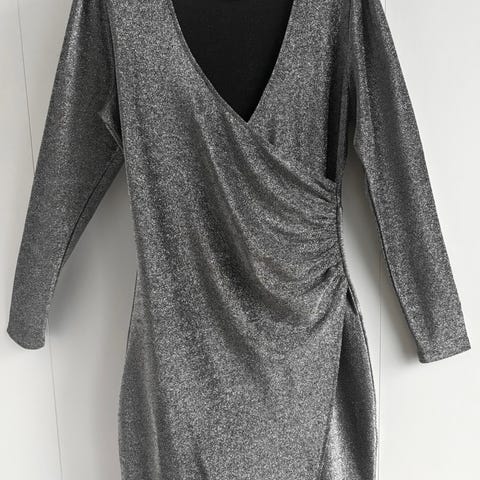 InWear festkjole for dame i størrelse L. Kjolen er flerfarget med et melert mønster og har lange ermer. Den har V-utringning foran og drapert detalj i midjen. Passer til fest og andre anledninger der man ønsker en enkel, men pyntet kjole.