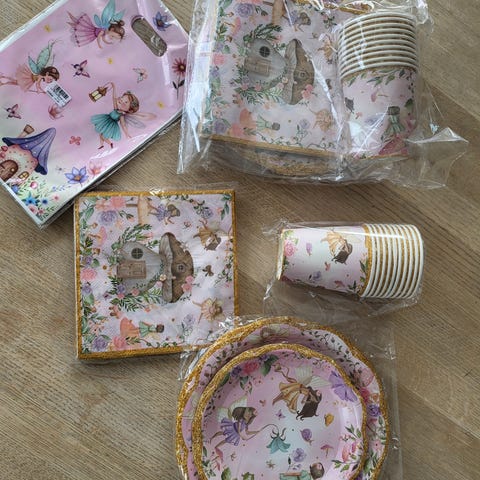 Muffins/kakeslott. Forvandle festbordet til en magisk slottssetting med dette fantastiske midtpunktet. Med et vakkert illustrert prinsesseslott med skinnende gulltårn og fargerike bånd.