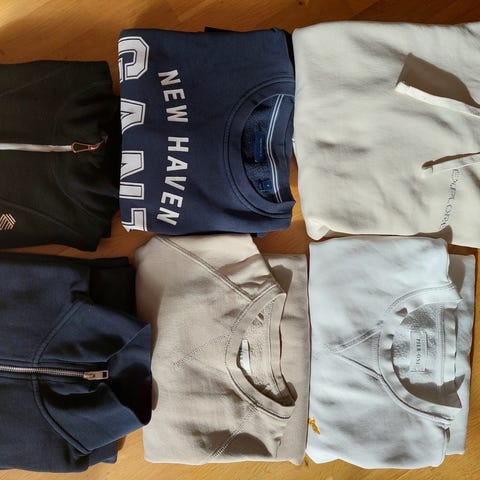 Selger en samling av helt nye, ubrukte hettegensere i størrelse Large. Alle genserne er i god stand, og de fleste er fortsatt i originalemballasjen med lapper på. Perfekt for deg som ønsker nye basisplagg.
