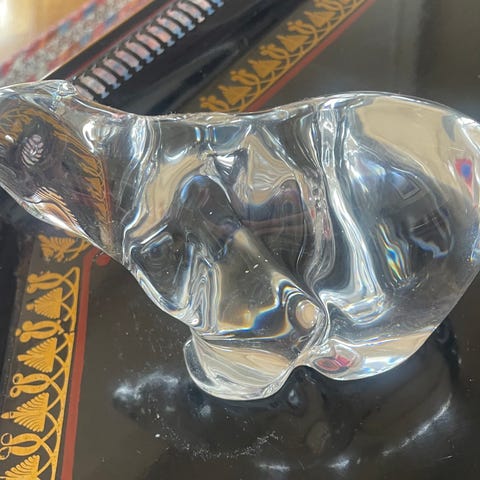 Flott isbjørn i krystall fra Hadeland glassverk Høyde 7,5 cm, lengde 12,5 cm. Den er pent brukt uten skader.