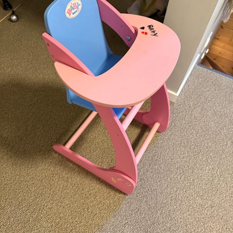Spisestol til dukke, kan gjøres om til bilstol og vippestol.