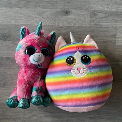 Jentene våre har ryddet rommet sitt og ønsker å selge samlingen sin med TY-bamser. Samlingen består av bamser i 4 forskjellige størrelser, hvor den ene er av den største typen.