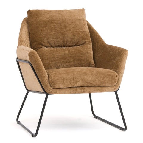 Stilig og komfortabel loungestol. Stolen er armløs og kommer med sorte mattlakkerte metallben og trekk i slitesterk og myk cordfløyel (100% Polyester). Sittehøyde er 45 cm. Stolen er 1 år gammel.