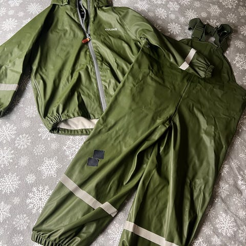 Selger regnsett, siste knapp på hetten funker ikke, det påvirker ikke bruk og Kan fikses.