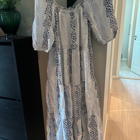 Zara sommerkjole i størrelse S. Kjolen er hvit med et blomstermønster og er laget for sommerbruk. Passer til uformelle og formelle anledninger.