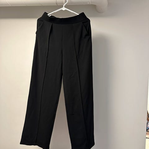 Highwaist dressbukse fra HM strl S, mørkeblå med knappedetaljer foran.