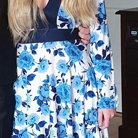 Bunnfargen er nydelig lysblå (vanskelig å få til riktig på bilde, har derfor lånt tre bilder fra nett) med blomstermønster og blondedetaljer. Merket:S men har god vidde og kan godt brukes også av en som har størrelse:M. Knyting i midjen. Aldri brukt, kun prøvd.