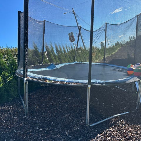 Nytt sikkerhetsnett og sikkerhets ring rundt trampolinen sensommeren 2024.