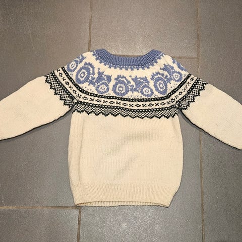 Hjemmestrikket Traktor genser t gutt 2-4 år kløfri ull