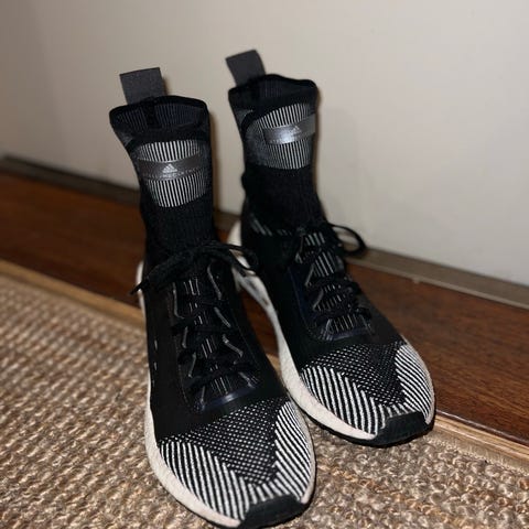 Selger et par helt nye og ubrukte Adidas sneakers i en utrolig fresh fargekombinasjon (hvit, lilla og turkis). Skoene kombinerer et stilig retro-design inspirert av 80-tallets løpesko med en moderne og komfortabel Boost såle.