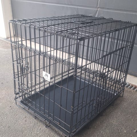 Selger et veldig romslig bur, H 81 x B 108 x D 72. Buret er veldig lite brukt, har noe overflate rust et par steder. Åpning både på langside og kortsiden. Vår border collie på 22 kg har veldig god plass inni buret, ble kjøpt da han var smågal som valp og han måtte være et trygt sted når vi ikke kunne passe på han selv. Tanken var da at han skulle kunne ha vann i buret og kunne bevege seg litt.