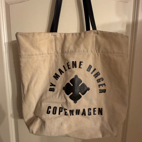 Selger denne Totebagen fra Malene Birger i Navy blue. Har noe avfarging nederst/under vesken, og noen flekker innvending som kan ses på siste bilde. Dette er noe som ikke er synlig eller merkbart ved bruk💙