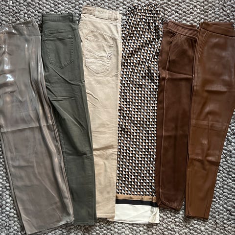 Flott, jeansblå topp fra Chico’s i silkeblanding selges sammen med tøffe jeans fra Ohpomp - begge er str.S